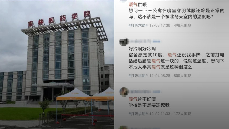 吉林一高校学生吐槽供暖效果欠佳,部分寝室要穿羽绒服御寒,校方回应